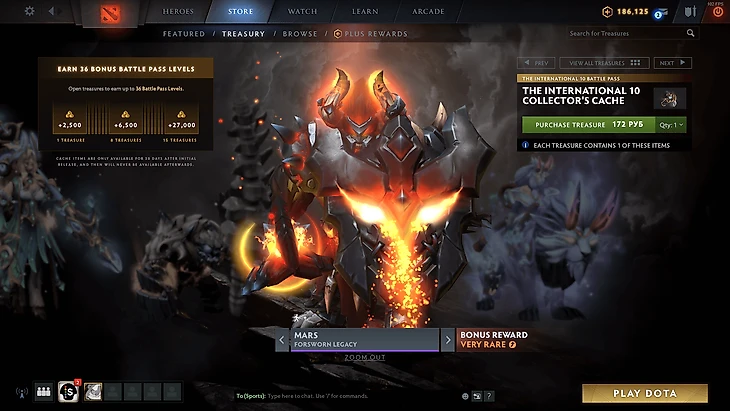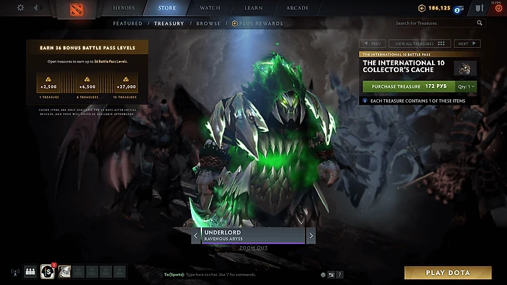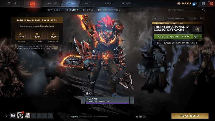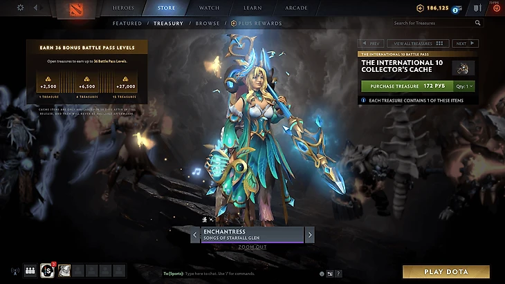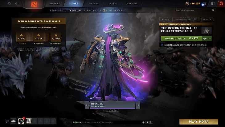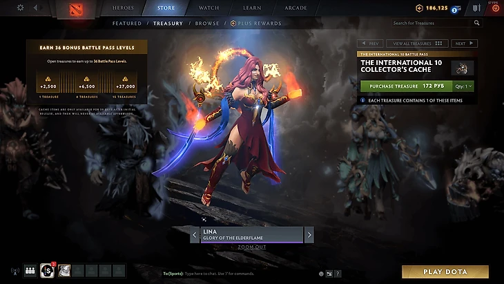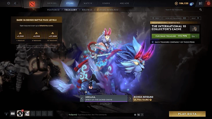 Вышла новая сокровищница The International 2020 Collector’s Cache. Ее можно будет купить в течение 30 дней, а кроме сета она неплохо бустанет Компендиум. За покупку одного сундука полагаются 2,5 тысячи очков Battle Pass, за покупку 8 – 6,5 тысячи, а за приобретение 15 сокровищниц – 27 тысяч очков. Из 18 сетов только один можно будет купить отдельно. Сет на Мирану станет доступен «когда-нибудь после TI11».
