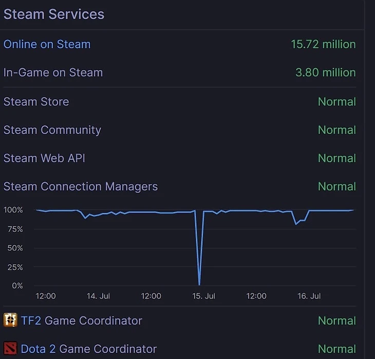 Конечно же лечение зависит от проблемы, поэтому первым делом нужно проверить соединение. При отсутствии соединения можно попробовать перезагрузить роутер. Если сервера Steam лежат, то, к сожалению, вы на это никак не можете повлиять. Статус серверов можно проверить тут.