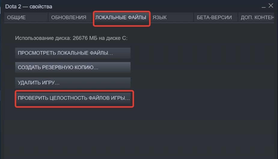 Если с соединением все хорошо, а сервера работают стабильно, то следующим шагом должна стать перезагрузка клиента. Для этого нужно вызвать Диспетчер задач, найти Steam, кликнуть ПКМ и выбрать «Завершить древо процессов». Если это тоже не помогло, а проблема поиска сети Дота 2 проявляется постоянно, то нужно проверить целостность файлов и обновить игру. Для этого нужно зайти в «свойства», выбрать вкладку «локальные файлы» и дальше нажать на «проверить целостность файлов игры» и при необходимости обновить клиент.