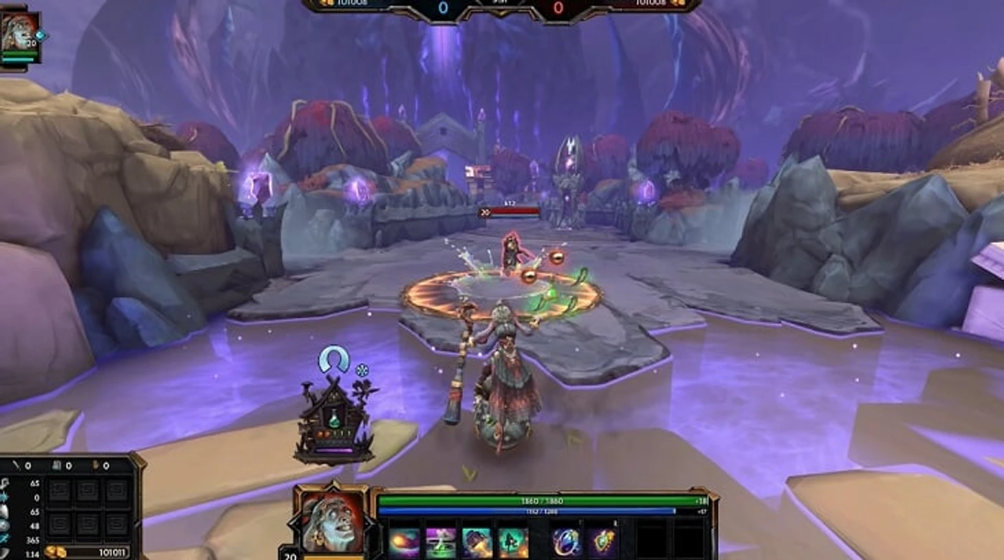 Наградили, и еще как! Во-первых, у нее одна из самых сильных пассивных (и стильных) способностей в игре. Около бабки постоянно находится избушка на курьих ножках, которая раз в определенный промежуток времени восстанавливает здоровье или дает стаки предметов (в Доте она давала бы 2-3 стака Бладстона или восстанавливала стики).