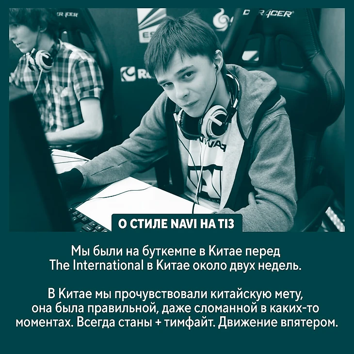 Китайцы тоже всегда набирали большое количество дизейблов и шли впятером. Условные Лионы, Шейкеры – это были для них очень ценные герои. Всегда на саппах были герои с дизейблами, не было условного Котла. Всегда станы + тимфайт, условный Тайдхантер, Гирокоптер. Даже если у врага был тимфайт сильнее, они все равно принимали драки. Пытались с тобой драться, не отдавать территорию. В этом плане мы что-то переняли у них, потому что были на буткемпе в Китае перед The International около двух недель. Мы там очень сильно выросли. Мы были что-то вроде европейско-китайской команды.