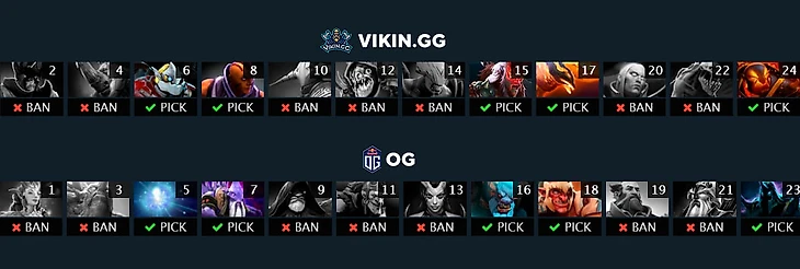 Так как возможности забанить нет, то придется думать как контрить героев вроде Тини, Инвокера или Абаддона, ведь Дарк Сира и Виспа в матчах с OG лучше просто не выпускать из банов. И последний момент, когда OG громили своих соперников с такой простотой – TI9. Тогда так никто и не придумал как их остановить, но посмотрим что будет сейчас.