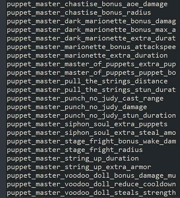 Вероятнее всего, это названия скиллов Кукловода. А примерно так выглядел его оригинальный скин в Heroes of Newerth.