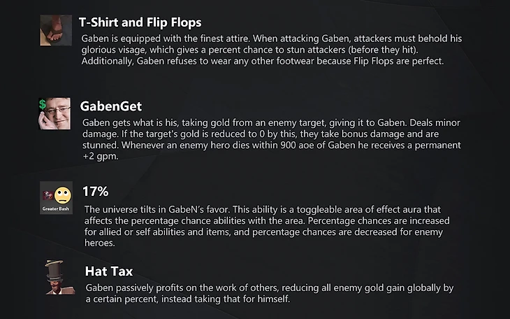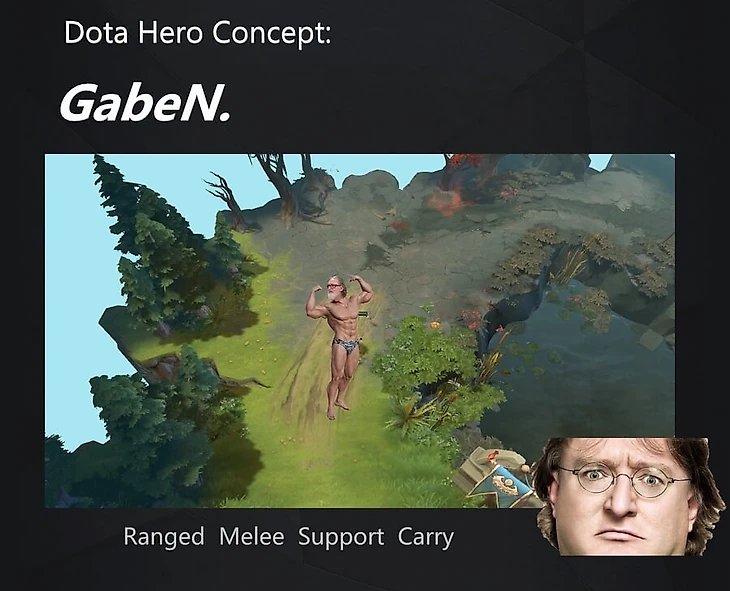 Пользователь Reddit с ником Dota2Relapse предложил свой вариант нового героя для Доты. Да, это Габен – он явно подкачался для этого анонса.