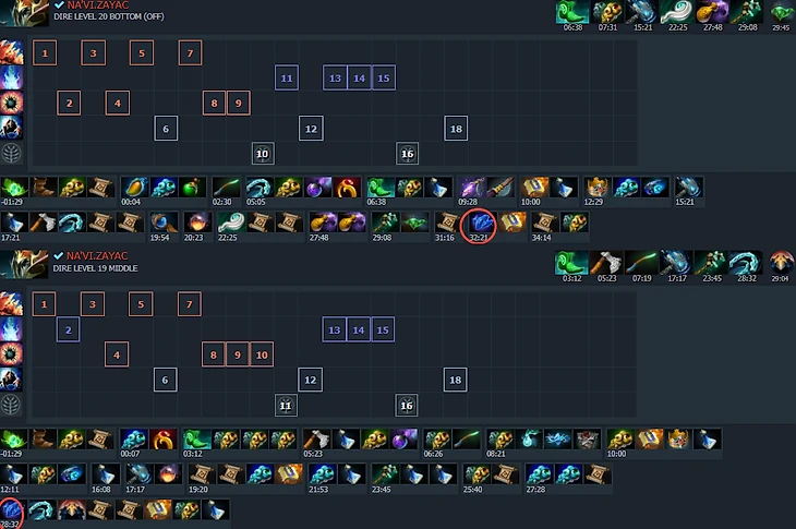 Заяц в двух играх за NoTechies тоже покупал Шард только в районе получаса игры, предпочитая Метеор и Еул. И это до 7.28b.