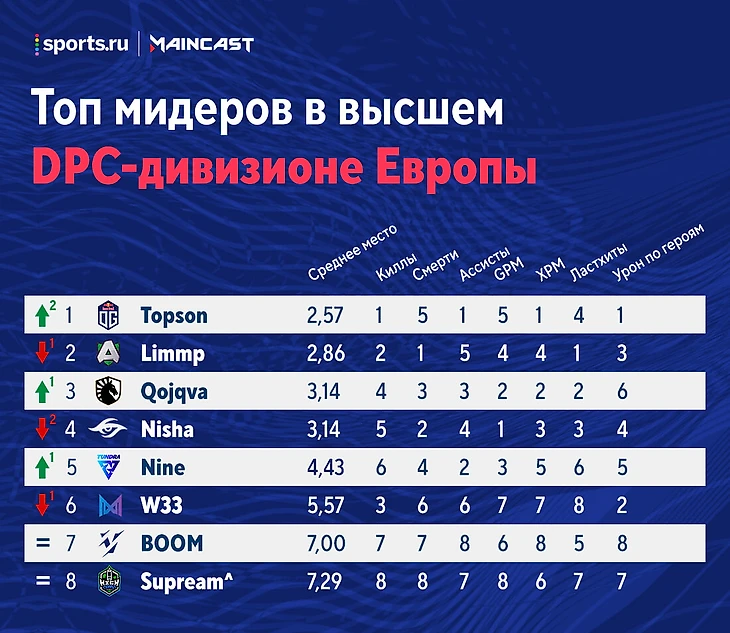Рейтинг игроков высшего дивизиона Европы перед 5-й неделей: Topson и Ceb – лучшие, Nisha – вне топ-3