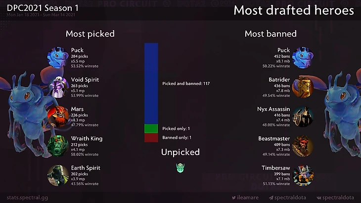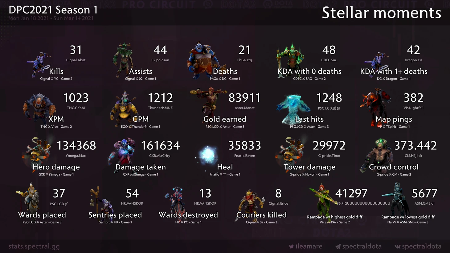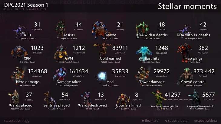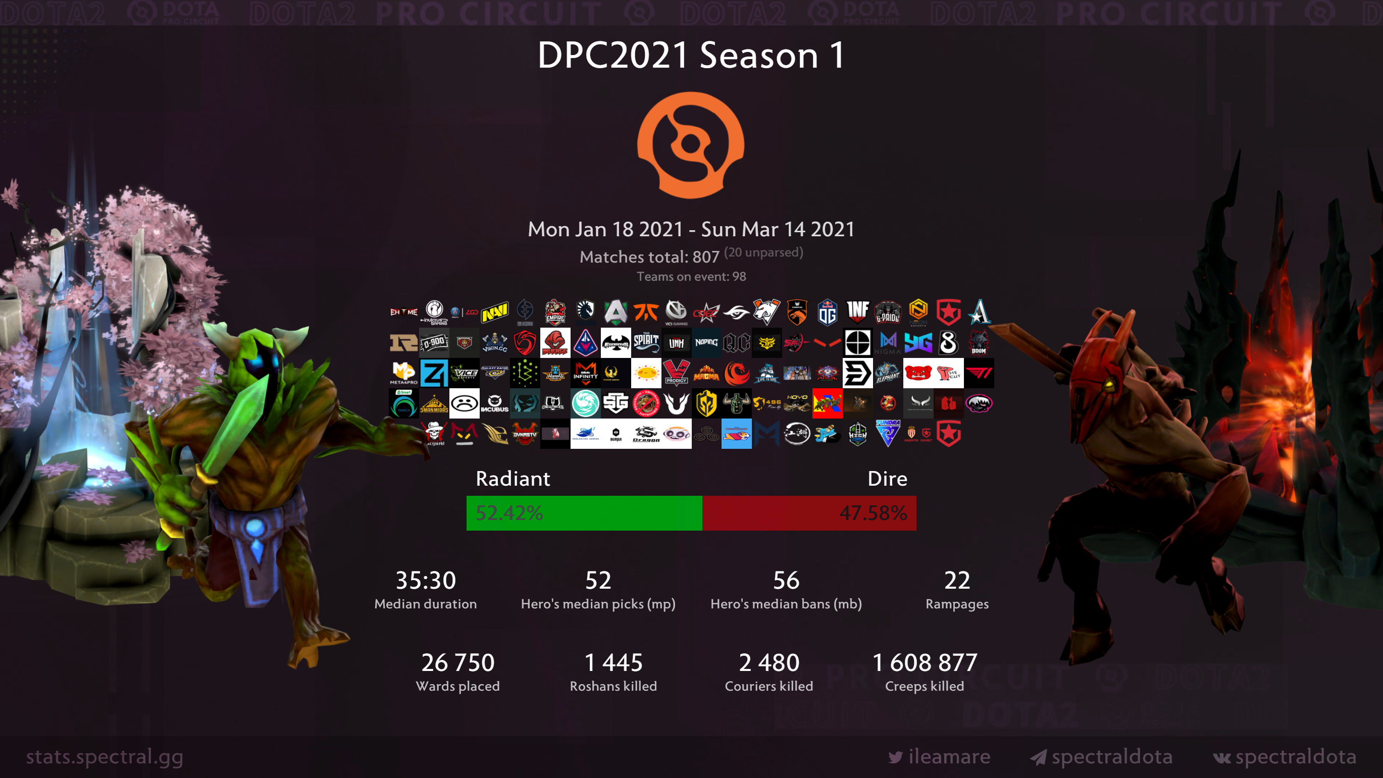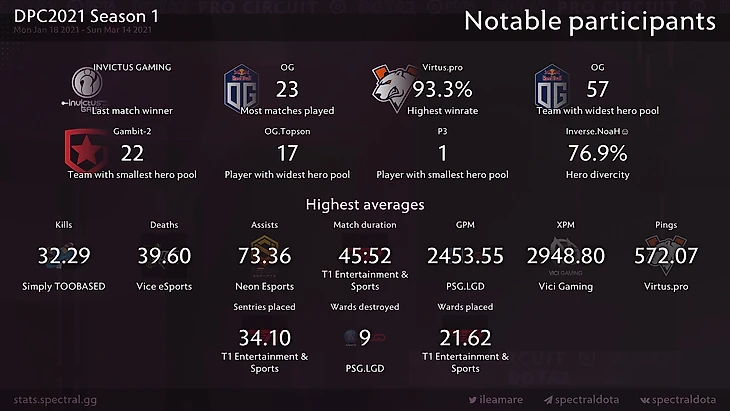 На днях завершился первый сезон Dota Pro Circuit 2021. У себя в блоге в VK, Telegram и Twitter я уже публиковал инфографики со статистикой по каждому из регионов в отдельности. Теперь же настало время подвести итоги первого сезона целиком.