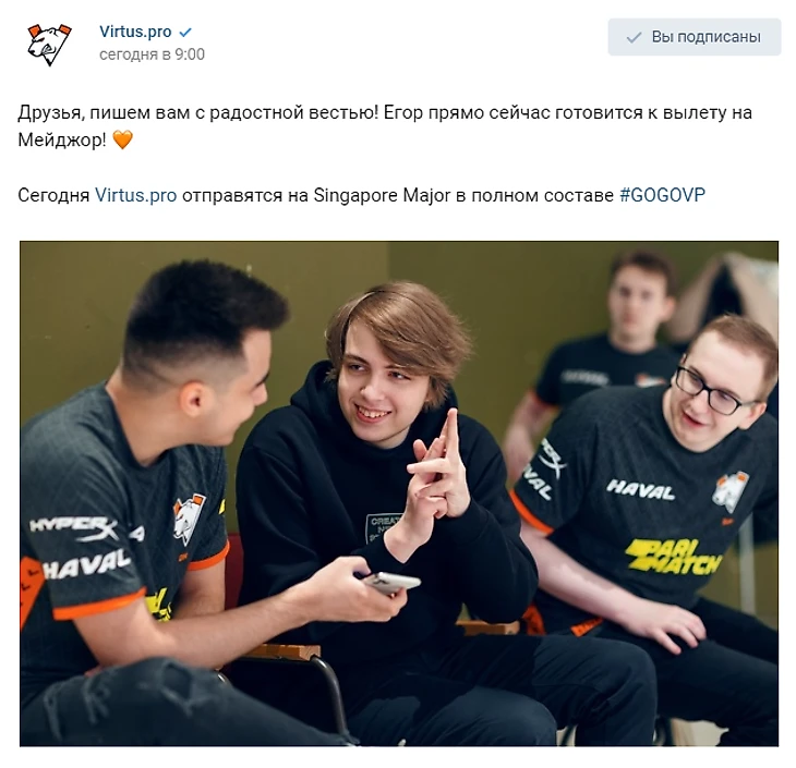 Официально: Virtus.pro выступят на Singapore Major в полном составе