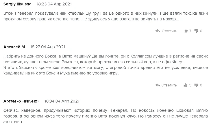Сразу после анонса на официальном сайте организации и прочих ресурсах на руководство и команду вылилось нереальное количество хейта, различных оскорблений и обвинений в том, что руководство скажем так сошло с ума. Помимо всего этого все потребовали обнародовать истинную причину кика General.