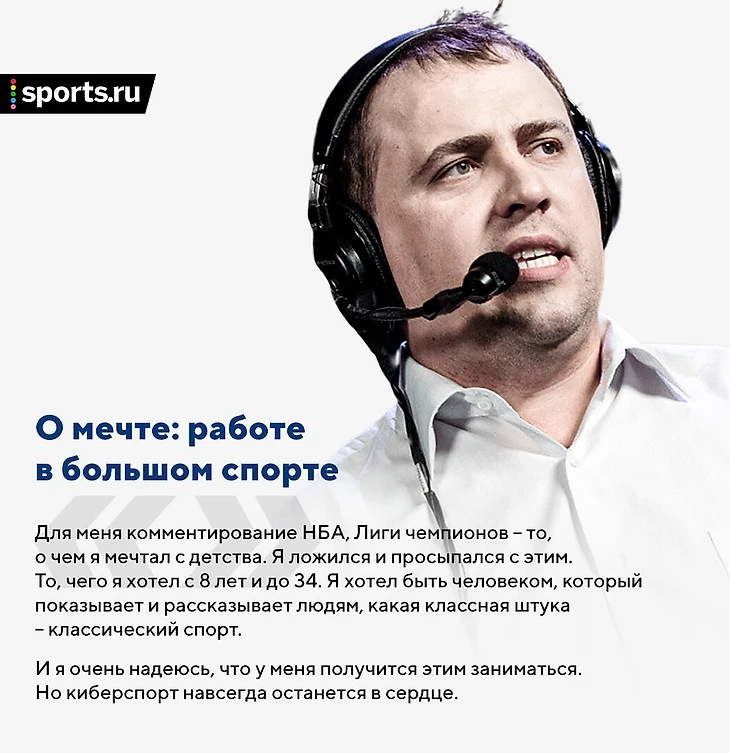 Виталий рассказывает, что мечтал комментировать спорт всегда. Думал, что несколько лет поработает в киберспорте и вернется к своей мечте. Но оказалось, что все не так просто.
