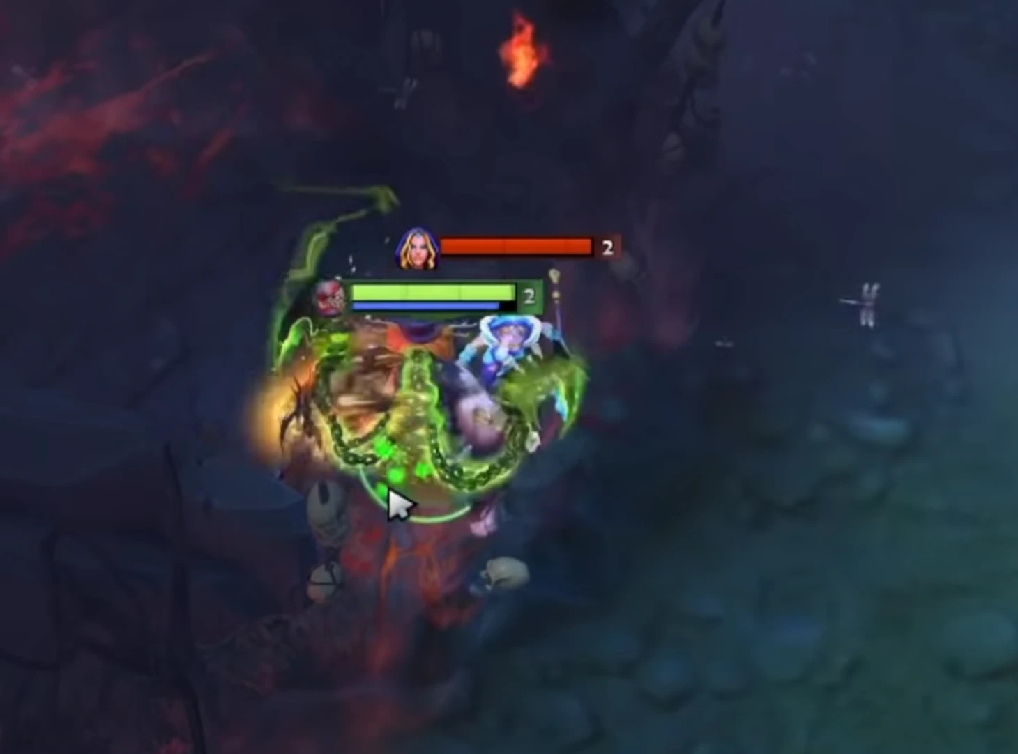 Комбинация Бэйн + Мирана – постоянная пятисекундная стрела, от которой невозможно увернуться. Но между тем, как спадет Сон и начнется стан Стрелы, проходит один фрейм, в который можно успеть нажать БКБ. Пока вы спите, просто спамьте кнопку БКБ. Эта фишка работает и со сном Наги, и со Стомпом Титана, и даже с Еулом и Торнадо Инвокера. Пудж на видео нажал БКБ между сном Наги и Блэкхолом: