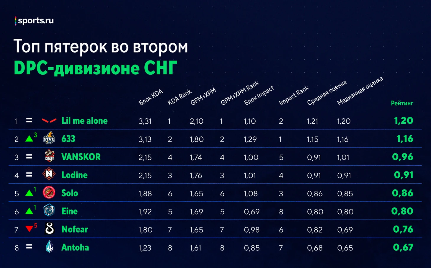 Рейтинг игроков второго СНГ-дивизиона после пятой недели: Лил – лучший саппорт, Денди, Дахак и Соло – вне топ-10