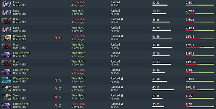 Началось все с лузстрика длиною в месяц – что бы я не делал на оффлейнере, мой мид и легкая линия были проиграны в ноль. Настолько в ноль, что Т1 в легкой часто падала с первой катапультой, а для моего рейтинга такое явление – что-то вроде кометы Галлея. Темпларка со статой 0-4 против Финда к 10-й минуте – тоже норма. Короче говоря, стандартный затяжной лузстрик с 10к порядочности. Хотелось для разнообразия поиграть в Доту, а не в мини-игру под названием «лейнинг» хотя бы в рамках одного дня. И вот выдалась одна свободная суббота, которую я и решил полностью посвятить Доте. Тогда за один день я сыграл 13 игр.
