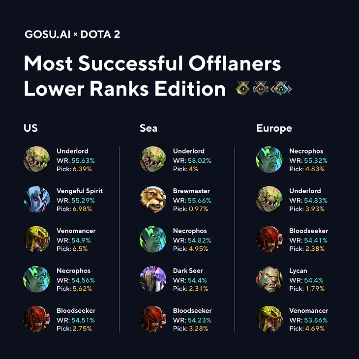 Dota 2 Инфографика: Оффлейнеры с самым высоким вин рейтом на низких рангах