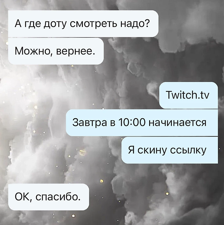 «А всегда так задерживают начало?» – закинул он мне месседж в 12:34 первого игрового дня, спустя 2,5 часа после того, как матчи в теории должны были начаться. Кажется, он все же начинает понимать, что такое турниры от Valve.