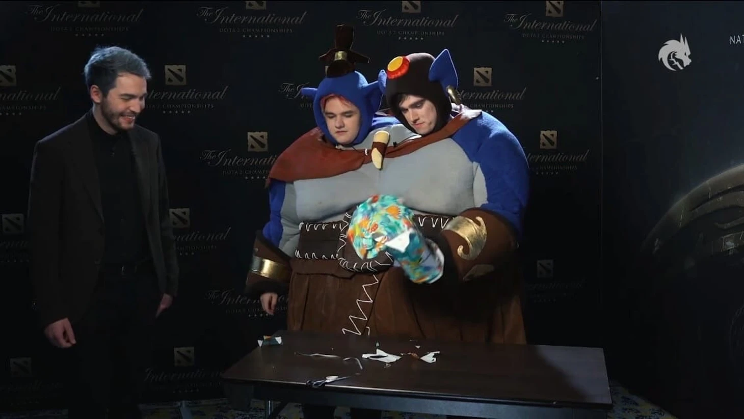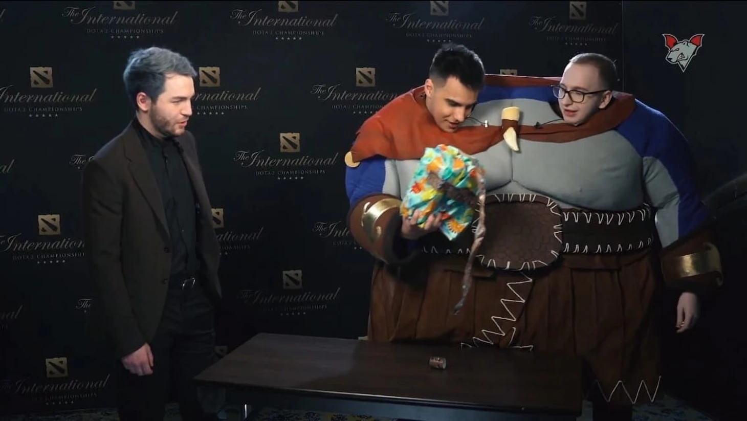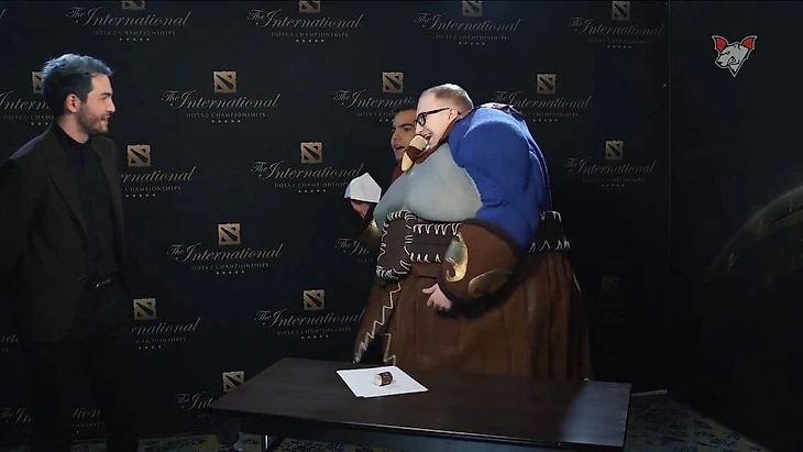 Вышло весьма забавно, особенно гневный спич керри Спирит о том, что уже на следующий день ему предстояло играть в групповой стадии турнира, а он стоит с Мипошкой в костюме Огра.