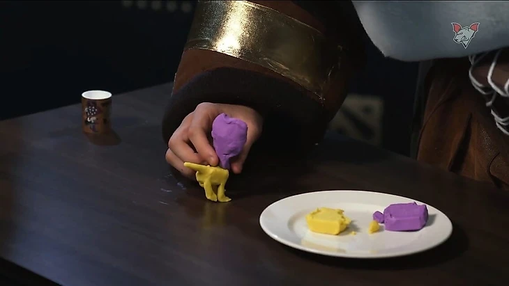 В завершающем конкурсе игрокам пришлось лепить из пластилина собаку.