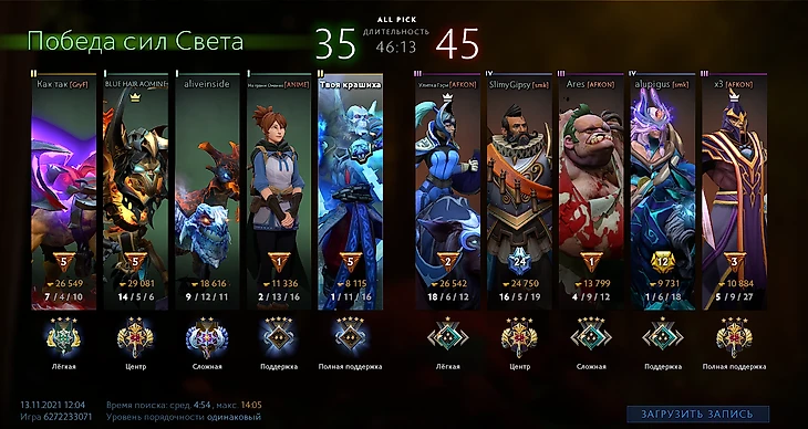 В первой игре, которую хотелось бы рассмотреть в качестве примера-опровержения тезиса, возьму противостояние Лайфстилера с Клинкзом и Луны с Кунккой. Мой друг, с которым игрался этот паблик, имеет со мной довольно большую разницу в ММР, и я, осознавая, что игра будет ложиться на его плечи, взял достаточно стандартного, не самого сильного саппорта, который в лейте (куда нам и нужно заводить эту игру таким пиком, поскольку спушить Кункку, Мирану и Пуджа было бы слишком сложно) обладает несколькими приятными опциями: хил зданий, снижение входящего урона по твоему кору в процентном соотношении, а также Chain Frost, который никогда не бывает лишним в драках, поскольку способен нанести до 6000 тысяч урона за бой. Три других игрока пикнули крайне неоднозначных героев, имея в уме превосходство их оффлейнера по уровню игры над противником (впоследствии выяснилось, что выбранный им герой нивелирует любое превосходство), ориентированных на пуш – здесь и Джакиро, и постоянно во время драк пушивший тавера Клинкз, и драчливая четверка-Марси, имевшая счет 0-5-4 после 8 минут лайнинга. Помимо таймера, на который себя поставили союзники, проблемой для нашей команды стал и мид-Клинкз – крайне слабый на ранней стадии игры герой, который по этой причине не является, мягко говоря, королем меты. К 7 минуте вражеский Кункка имел на 1200 нетворса больше и довольно быстро пошел гангать, чего не мог делать обездоленный скелет. Противники методично отжимали карту, друг на Лайфстилере пытался изо всех сил найти пространство для фарма, в то время как Джакиро с другом Марси и автором статьи по КД Макропиры дрались и умирали – всё во имя спейса! Несмотря на постоянное напряжение в войсе, все происходило ровно так, как мы с другом предсказывали изначально – Джакиро к 25 минуте потерял совсем и крипов, и влияние на происходившее на карте, Клинкз продолжал отфармливаться, как и Лайфстилер, но в лейте, в который каким-то чудом была затянута игра, Гуля сильнее Луны, Кункки и Пуджа, что он и доказал, выиграв несколько файтов кряду. О пуш-потенциале Клинкза говорить лишний раз не стоит – все итак знают, на что этот герой способен. Итог – победа ровно в том стиле, что был предсказан еще до старта игры.