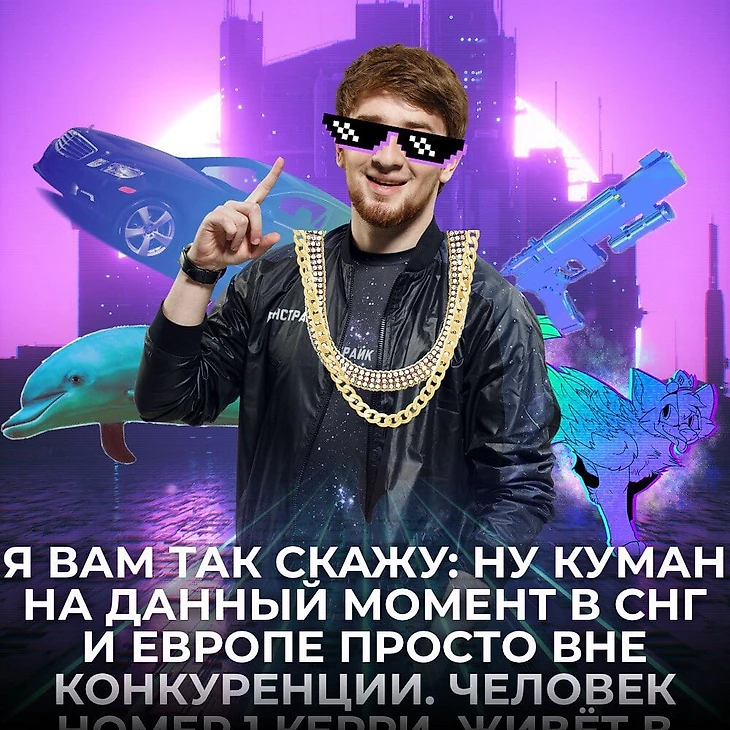 «Ну Куман на данный момент в СНГ и Европе просто вне конкуренции. Человек номер один 1 керри, живет в Чечне, реаллайфер при таком уровне игры, гоняет в Чечне на мерсе/камри, фоткается с ножами/стволами, репер, играет с Лилом в одной команде. Типа никого даже близко нету сейчас».