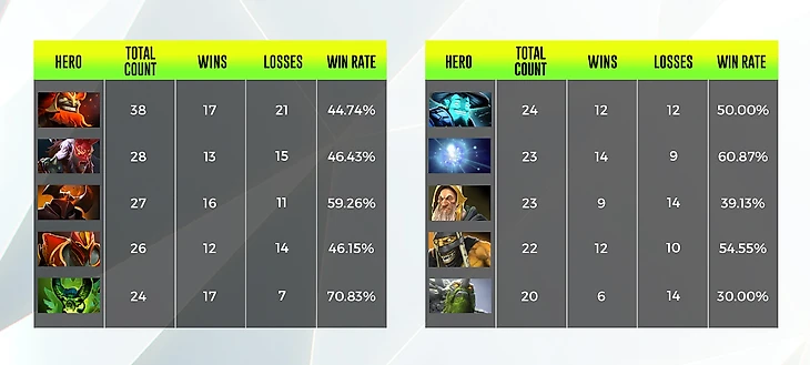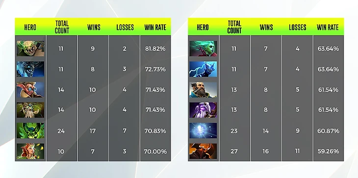 Герои с самым высоким процентом побед на групповых этапах ESL One Stockholm Major