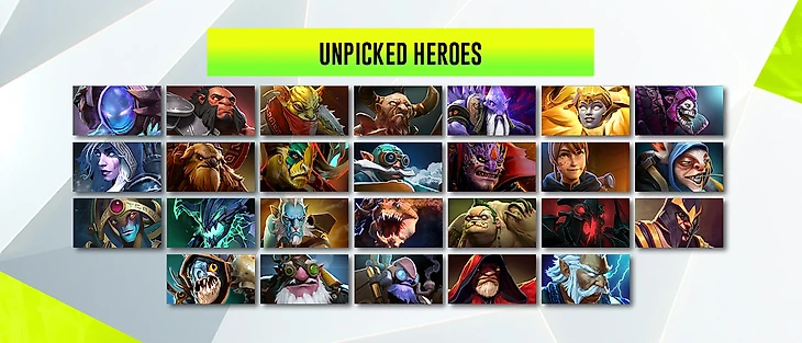 В общей сложности 26 героев были полностью проигнорированы в первых 80 играх. Marci и Primal Beast еще не были представлены в Captains Mode, поэтому 24 подходящих героя не были выбраны на групповых этапах ESL One Stockholm. Надеюсь, они получат хорошие баффы в патче 7.32.