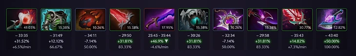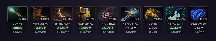 Вариативный итембилд. Тут есть одно исключение, Армлет на этом герое берется всегда, остальные предметы вы выбираете сами. Нужна инициация – Блинк, надо ловить мобильных героев – Орчид, нужно увеличить свой урон – Сабля. Этот список бесконечен, но наиболее популярная сборка включает в себя: Армлет, Саблю и БКБ с Блинком. Шард игнорировать глупо, ведь так вы безопасно отпушиваете пачку крипов.