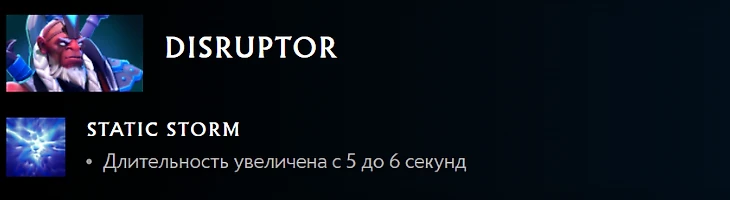 Одна секунда? Да, одна секунда. У ультимейта Дизраптора интересная механика: с каждой секундой урон увеличивается. Поскольку минимальные и максимальные значения не изменились, суммарный урон от способности значительно возрос. На шестом уровне вы наносите почти 900 урона! Добавьте к этому помощь четверки − и вы убиваете любого героя на 10-й минуте. Благодаря баффу герой не сильно зависит от керри. Заработать соло-фраг всегда приятно.