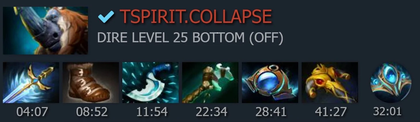 Ниже – характерные моменты игры Коллапса в одном из матчей. Составы команд в нем были следующими: y`, Faith_bian, Torontotokyo, Сollapse +1 против Sccc, Ame, Xiao8 и Darkmago +1. Нормальный такой ММ-чик, чтобы потренироваться перед TI, согласитесь? 5 чемпионов Инта да еще и парочка финалистов.