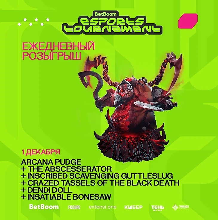 Ни дня без розыгрыша в нашем уютном Telegram-канале — 30 ноября запустили еще один! В розыгрыше участвует Аркана на Pudge и другие крутые бонусы, список которых виден на иллюстрации выше. Подборка призов обновляется каждый день, а в розыгрышах участвуют как ценные подарки для Dota 2, так и для Counter-Strike: Global Offensive. Подписывайтесь на Telegram-канал лиги BET и не пропускайте эти раздачи.