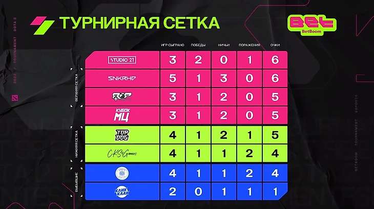 Игры медиалиги BET продолжатся уже 2 декабря. В расписании вас ждут сразу два bo2-матча по Dota 2: в начале дня TOP DOG встретится с КУБОК МЦ, а завершит очередную неделю медиалиги BET борьба STUDIO 21 и RIP, двух сильных команд из верхней сетки. Не переключайтесь и подписывайтесь на наш Telegram-канал!