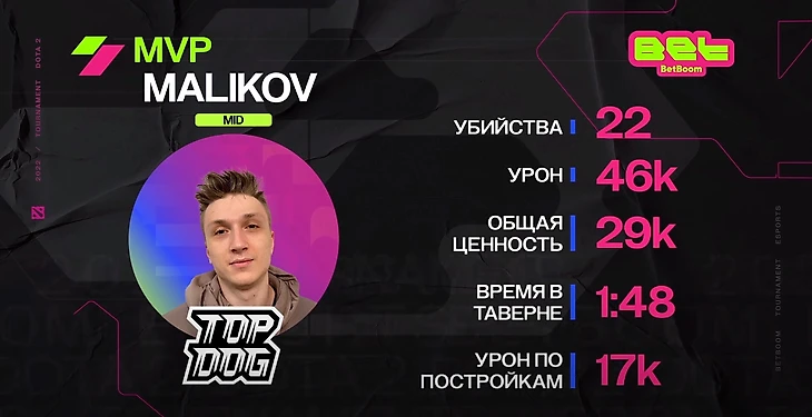 MVP второй карты стал GANNIBAL, саппорт команды TOP DOG. Он мастерски играл на Венге и внес огромное количество импакта в ключевые файты!
