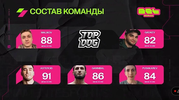 Коэффициент от BetBoom на первую карту составил 2.10 для TOP DOG и 1.65 для CKS как для фаворитов встречи. Составы команд заслуживают отдельного внимания: за TD выступили MALIKOV (ака GgwpLanaya), GADAEV, ASTEROID, GANNIBAL, PUSHKAREV. Ростер CKS же был представлен MIERO, DJ TITOV, LEO, PLETIKOSAAP и FJESTA, который решил попробовать свои силы в соревновательной Доте после того, как показал нереальный скилл в CS:GO!