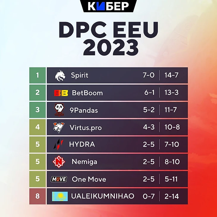 9Pandas, Team Spirit и BetBoom Team проходят на мейджор на Бали. Hydra, Nemiga и One Move 5 июня сыграют Bo1-переигровки за вылет из первого дивизиона.