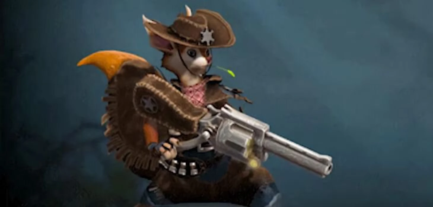 А добавим чуть-чуть вестерна в Доту? Необязательно это выпячивать или делать нарочито шаблонно. Заменим шерифскую звезду на металлический орех, добавим различных подвесов – и готово. Сама Белка – забавный герой, и где только не была наша Прохвостка! Так почему бы не развить ее приключения? Важное замечание: мы не делаем револьвер огнестрельным. Раз уж из лютни стрелять можно, то и арбалет в виде пистолета – нормально.
