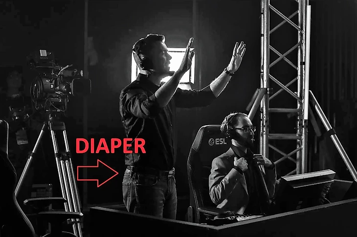 «Да, я носил подгузники во время работы на ESL One Malaysia. Мне не пришлось их использовать, но вы можете понять мою паранойю, когда ты часами стоишь перед многотысячной аудиторией. Я горжусь, что смог пережить перелеты и само мероприятие, ни разу не обделавшись (во всяком случае, за пределами моего гостиничного номера)».