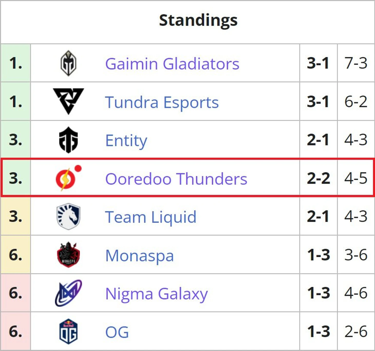 С Liquid, конечно, будет тяжело, как и всем остальным. Но нельзя сказать, что Entity и Nigma – неподъемные команды для Ooredoo Thunders. При этом каждый матч очень важен, ведь если команда Наива обыграет хотя бы две команды из трех оставшихся, то мы вполне можем увидеть Ooredoo на мейджоре или как минимум в переигровках.