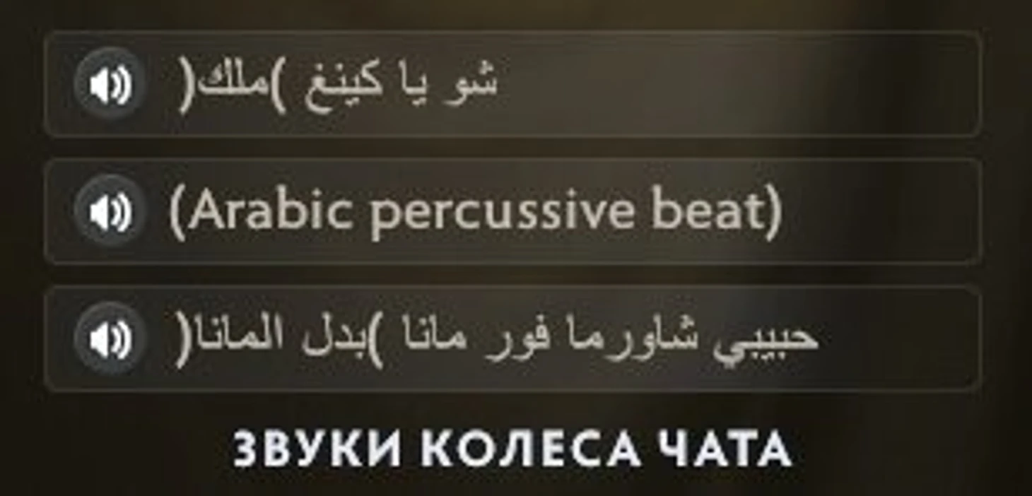 Кстати, звуки для колеса чата в наборе поддержки команды записаны на арабском языке, что лишний раз подчеркивает связь команды и владельца.