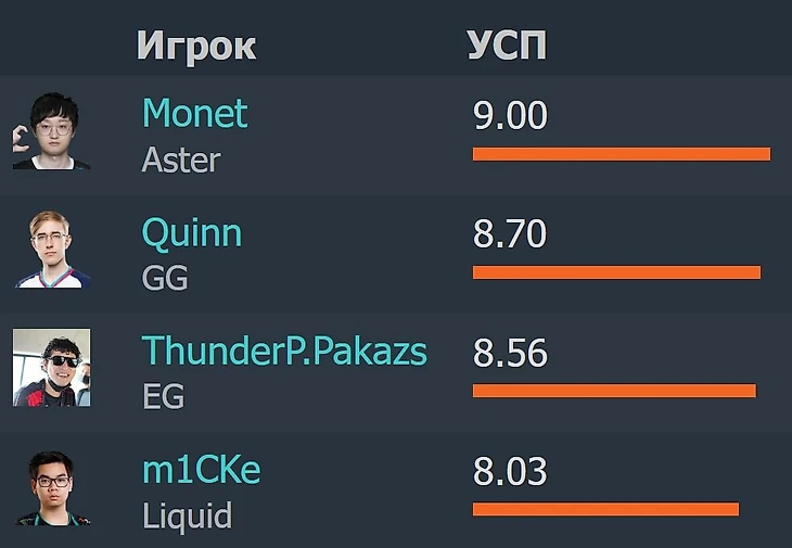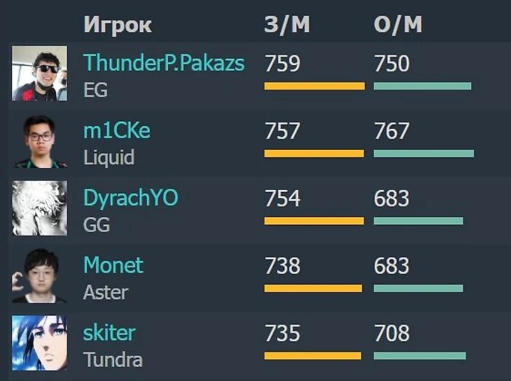 Но не нужно удивляться такому развалу – это не единичный случай! Паказ очень хорош на протяжении всего турнира: он в топе по KDA и уступает только Квинну и вылетевшему Монэ: