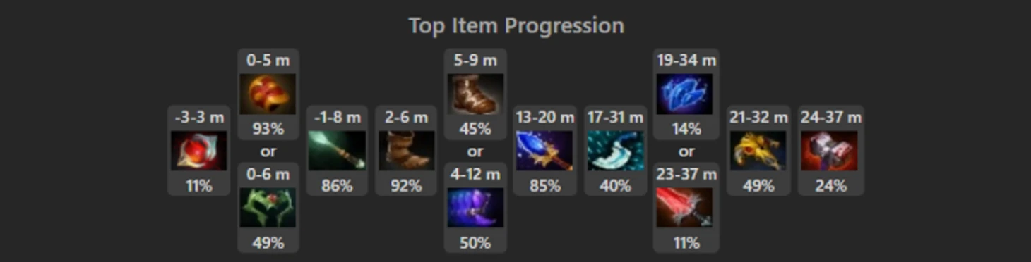 Айтембилд не сильно сложнее: Яторо и Аме берут ПТ и БФ, а потом выходят в Аганим, Блинк и БКБ. Обычно на этом моменте игра заканчивается. Но бывает и иначе – тогда добираются Башер и Криты. С этого момента нас не остановить. Опционально можно добрать Нуллифаер, Скади, МКБ или Сильвер в зависимости от того, чего не хватает в игре.