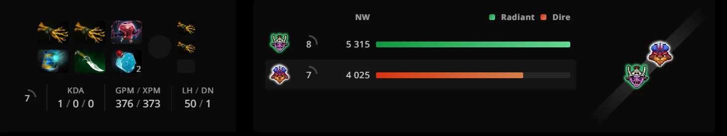 Как итог этого распределения – Дениса часто закрывают на драфте. В матче с PSG.LGD мы увидели, как Эмбера на первый пик закрывают Хускаром (лучший известный контрпик, который часто абузят те же Gaimin Gladiators).