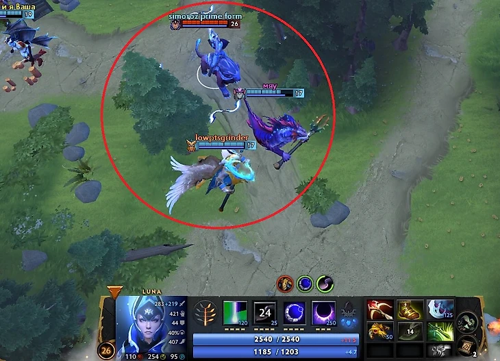 И где-то в районе Бабочки/Сатаника наш геймплей серьезно меняется относительно всех прошлых патчей и начинается самое интересное. Теперь в этот момент игры Луна покупает Блинк и следом Шард, и с привычным оверфармом смело врывается под Эклипс в эпицентр любой драки. И там уничтожает и месится, будто она какой-то Troll Warlord!