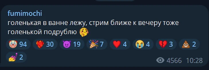 Реальное имя Fumimochi – Виктория Демина, она стримит на несколько тысяч человек. А еще разговаривает «UwU-голосом» – странным и ненатуральным, высоким с придыханием. За сексуальный контент Викторию уже трижды банили на твиче, правда, каждый раз всего на неделю.