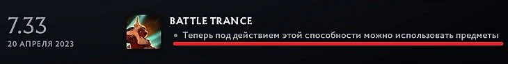 В патче 7.33 Троллю разрешили использовать предметы под действием способности Battle Trance. Это ключевой момент для понимания новой фишки.