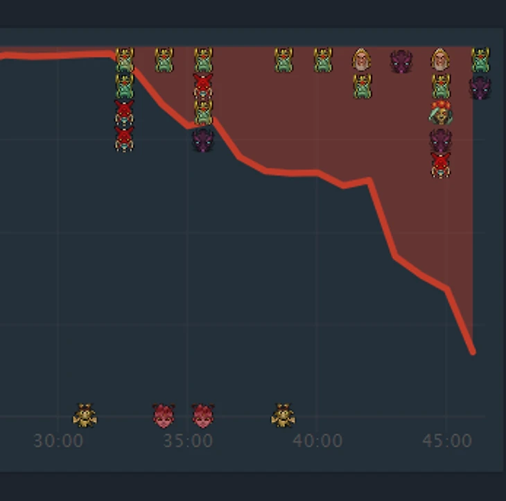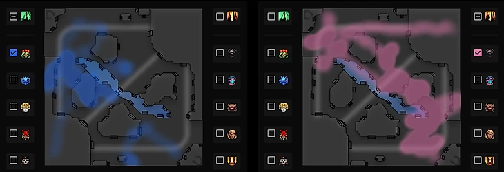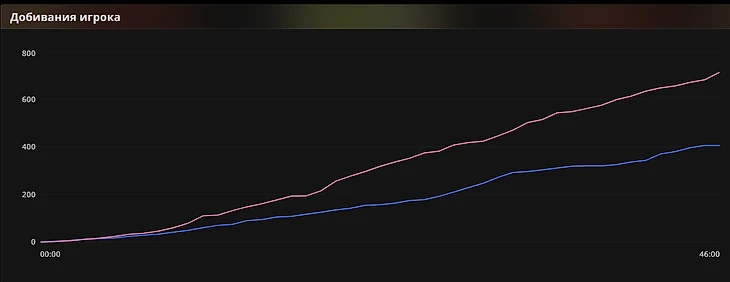 Более того, Silent добирает Свена для Yatoro: Sven исторически хорош из-за разницы темпа со Спектрой – ты банально не поспеваешь за ним. Розовым отмечены ластхиты Yatoro, синим – Спектры.