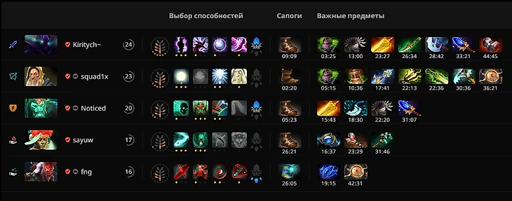 Как итог: Spirit уперлась в контру героев на механиках, но забыла про собственный рисунок боя. Для драк 5х5 не хватает тимфайта, для защиты от гангов – собственно, защитных героев. Да даже урона по зданиям в драфте нет!