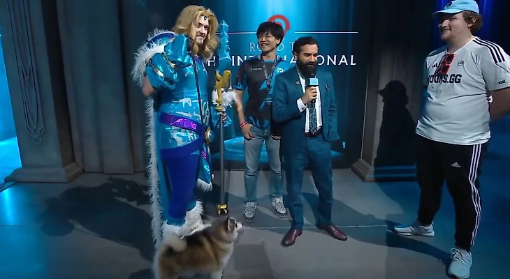 На The International 2023 не без милоты. Во-первых, Слакс в очередной раз (в третий или пятый?) косплеит ЦМ’ку. Во-вторых, делает это с красивой собачкой: