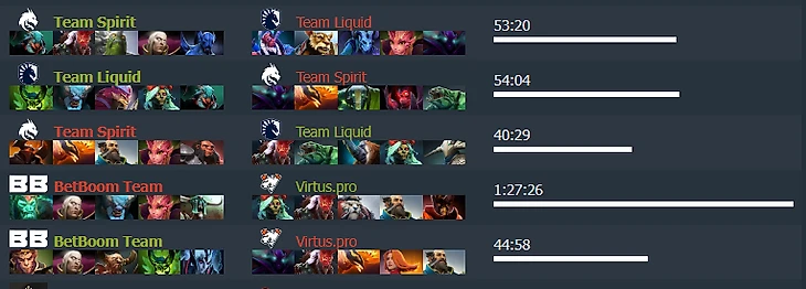 Мы привыкли подтрунивать над BetBoom Team за их пассивную игру, но среднее время на победу у Spirit даже выше: 51:30 у BB против 53:59 у Spirit. У LGD в плей-офф 48:08, что тоже не далеко ушло от наших команд.