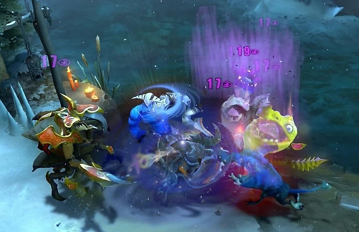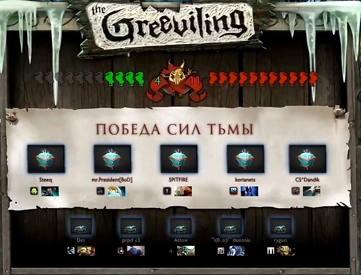 К тому же урон, нанесенный гряволам, или убийство большинства гряволов в лагере не имели никакого значения. Только ластхит по последнему живому гряволу в лагере позволял получить очко в копилку команды – и это добавляло режиму смысла и экшена. После смерти последнего грявола в лагере, на его месте появлялся подарок, который давал случайный предмет из Доты случайному игроку на карте.