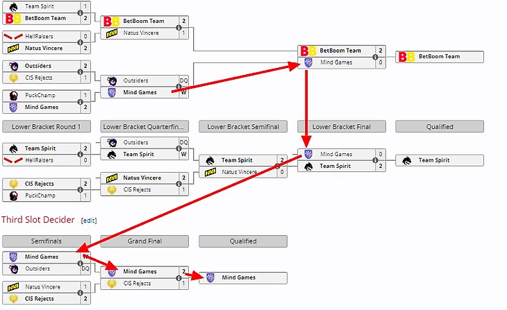Первый и второй гранд-финалы MG проигрывают без шансов. Но вот в третьем, куда команда снова попадает без боя (Outsiders нет, и один участник нижней-нижней сетки проходит автоматически), Ming Games обыгрывают CIS Rejects. И проходят на стокгольмский мейджор!