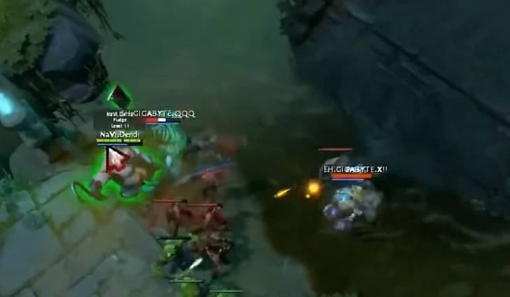 Денди, пока у него еще работала Хаста, прибегает и убивает Тайда уже райткликами, просто использовав Rot. Восьмое убийство Пуджа за 11 минут! Пока оффлейн-Клок EHOME был третьего уровня, мидовый Пудж NAVI дорос до 11-го.